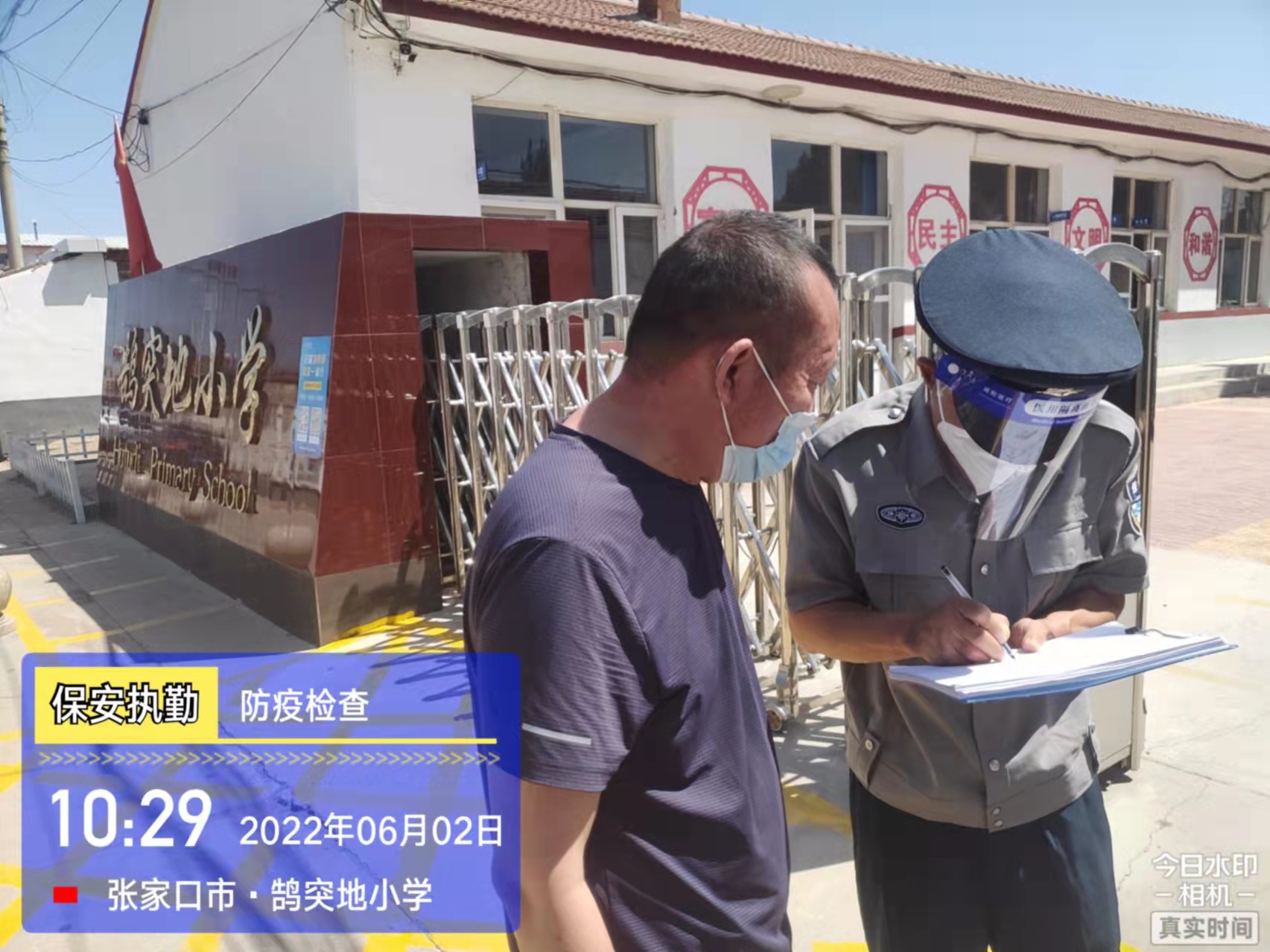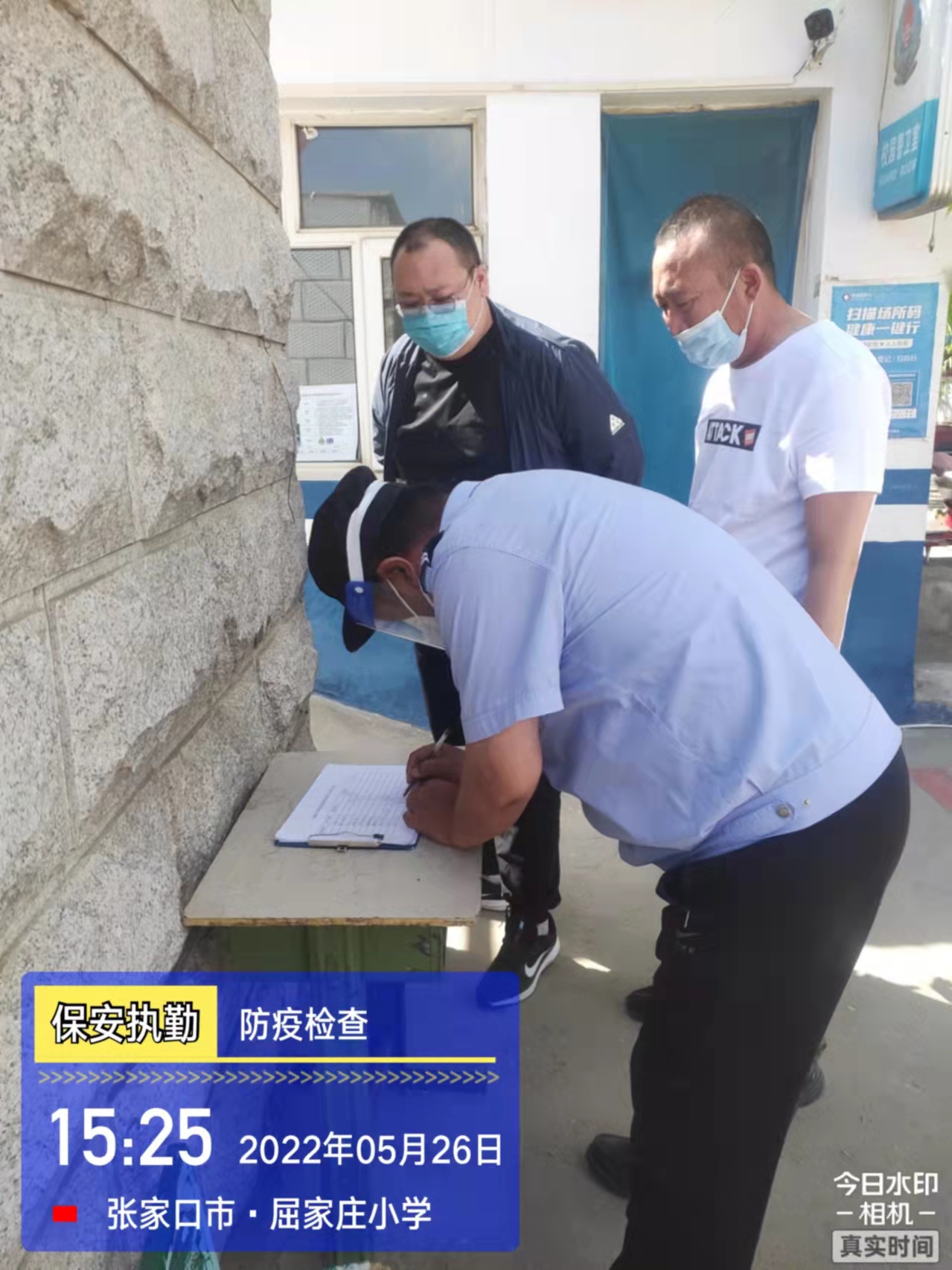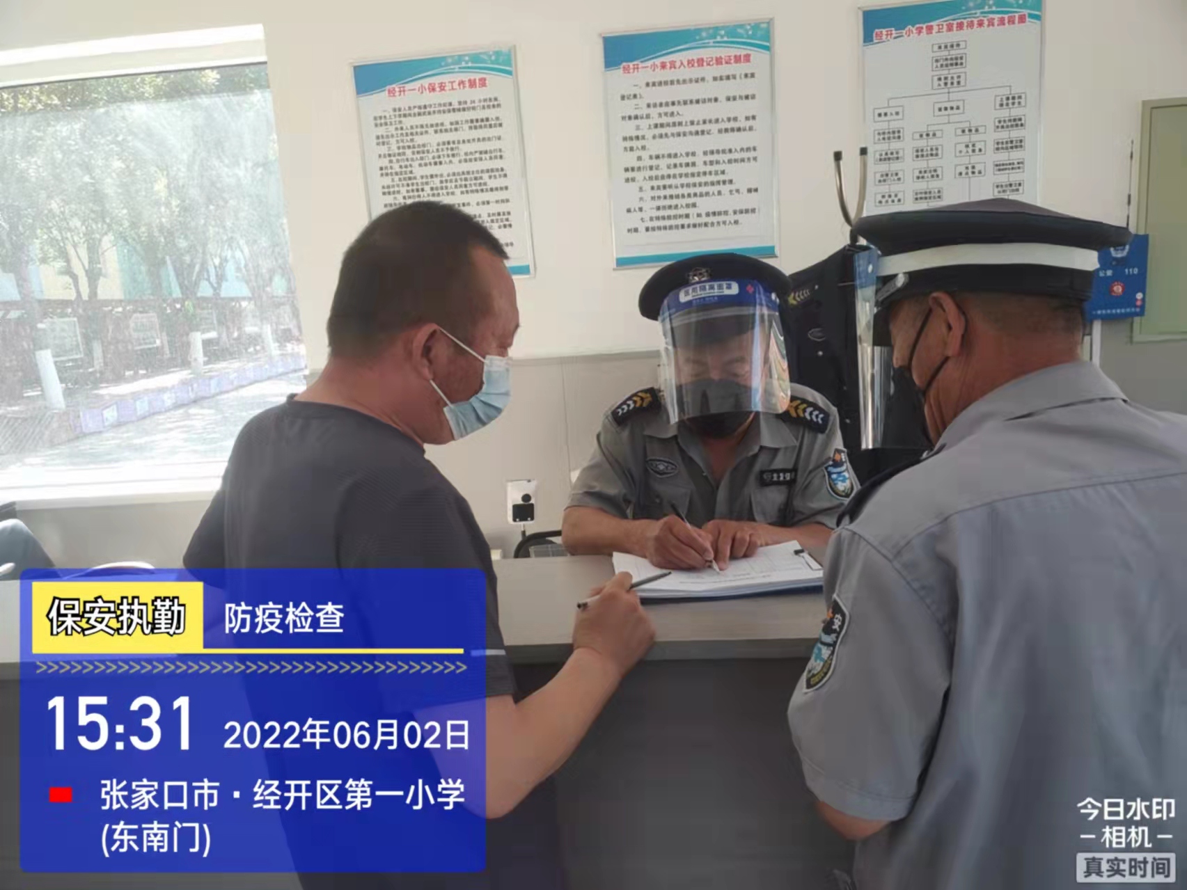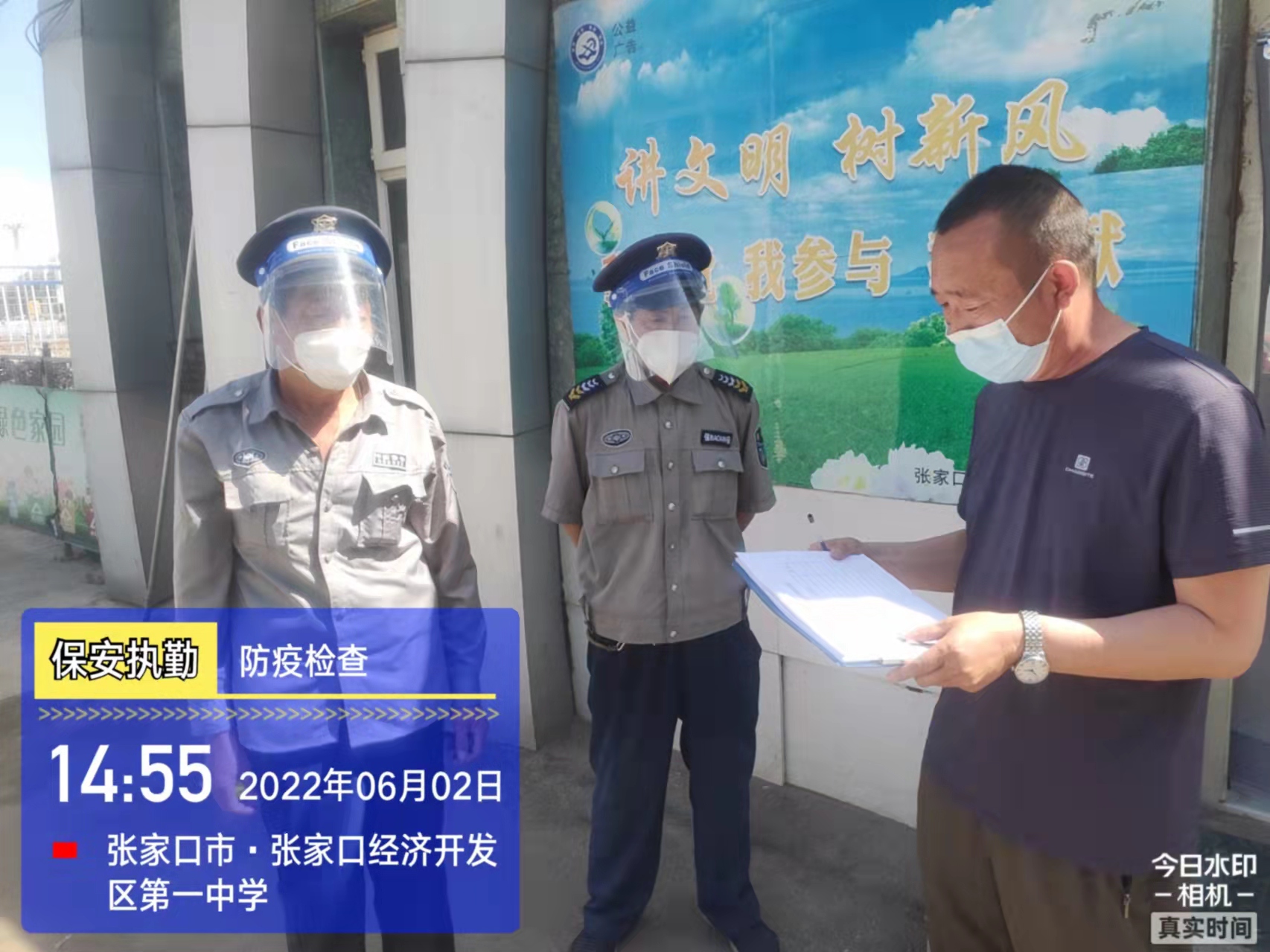 會后,我公司迅速召開“疫情期間學校門衛(wèi)安全防控工作要求”的會議,制定了校園安全防疫規(guī)定:疫情防控期間,校園保安隊員必須穿制服,規(guī)范佩戴“三件套”(防護隔離面罩、N95口罩、一次性PVC手套);進出校園的師生必須測量體溫,外來人員需登記、測溫、掃碼(幸福張家口,呈綠碼)、且持7日內核酸陰性檢測結果;保安室需保持干凈整潔,物品擺放有序,勤開窗通風,定期噴灑消毒藥水。為此,公司特成立校園防疫檢查小組,由副經理帶隊,協同主管大隊長對經開區(qū)所有中小學校安保崗位進行防疫工作檢查,檢查期間,發(fā)現問題,現場處理,并及時與校方領導溝通,杜絕同樣問題再次出現,確保校園防疫安保工作萬無一失,為各校師生鑄就一道安全防線!